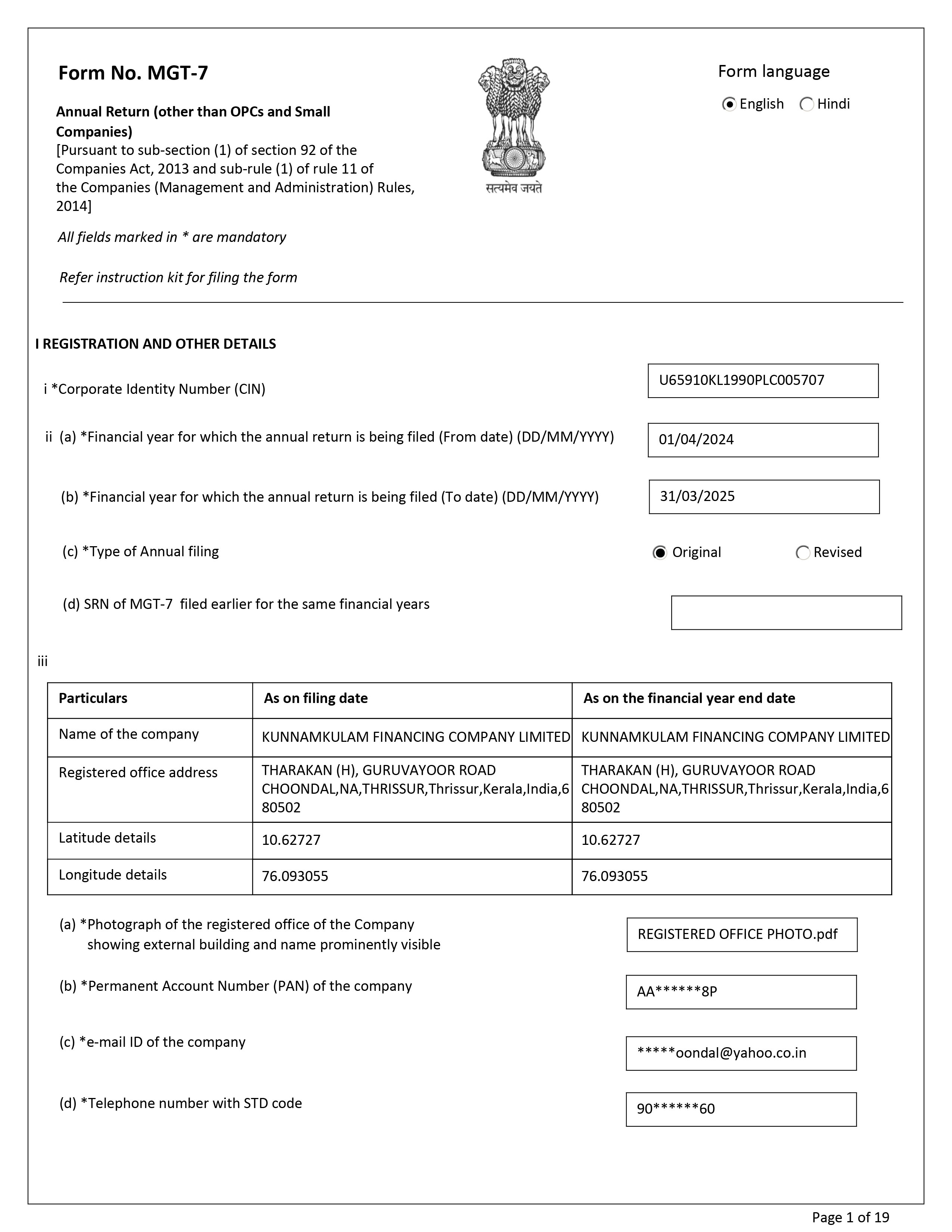 ANNUAL RETURN